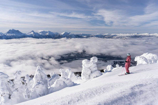 沿着瑞佛史托克(Revelstoke)、罗杰斯通道(Rogers Pass)到戈尔登(Golden)的线路,滑雪者仿佛穿行在BC省最原始的山脊深处。这条线路不仅考验技术,更让人切身体会到雪山的尺度与落差感。瑞佛史托克山地度假村(Revelstoke Mountain Resort)以1,713米北美最大垂直落差著称,从山顶延伸至山脚的雪道如同天然滑梯,长距离的深粉雪地形让每一次下滑都充满力量与韵律感。脚下的雪道不断倾斜、蜿蜒,你能感受到大腿肌肉的燃烧,也能体会速度与自由在心中交汇的快感。